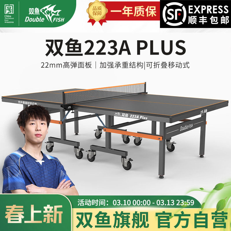 双鱼223A乒乓球桌PLUS版室内标准家用乒乓球台可折叠式带轮乒乓桌