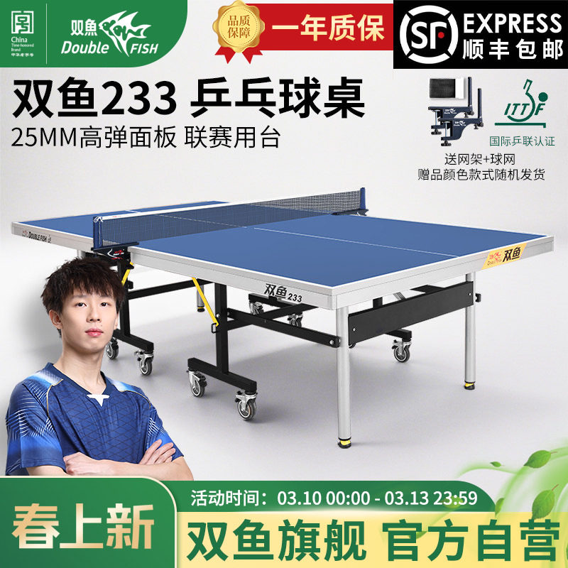 双鱼233联赛乒乓球台家用可折叠移动式25mm乒乓球桌室内标准比赛