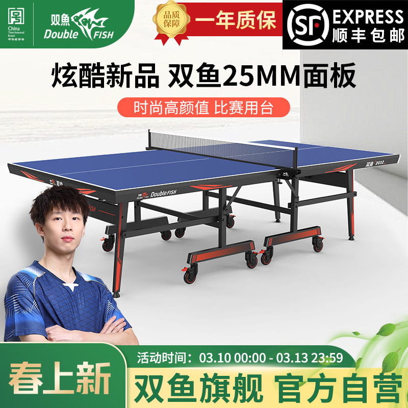 双鱼2032乒乓球台标准25mm蓝色面板可折叠移动式乒乓球桌家用室内