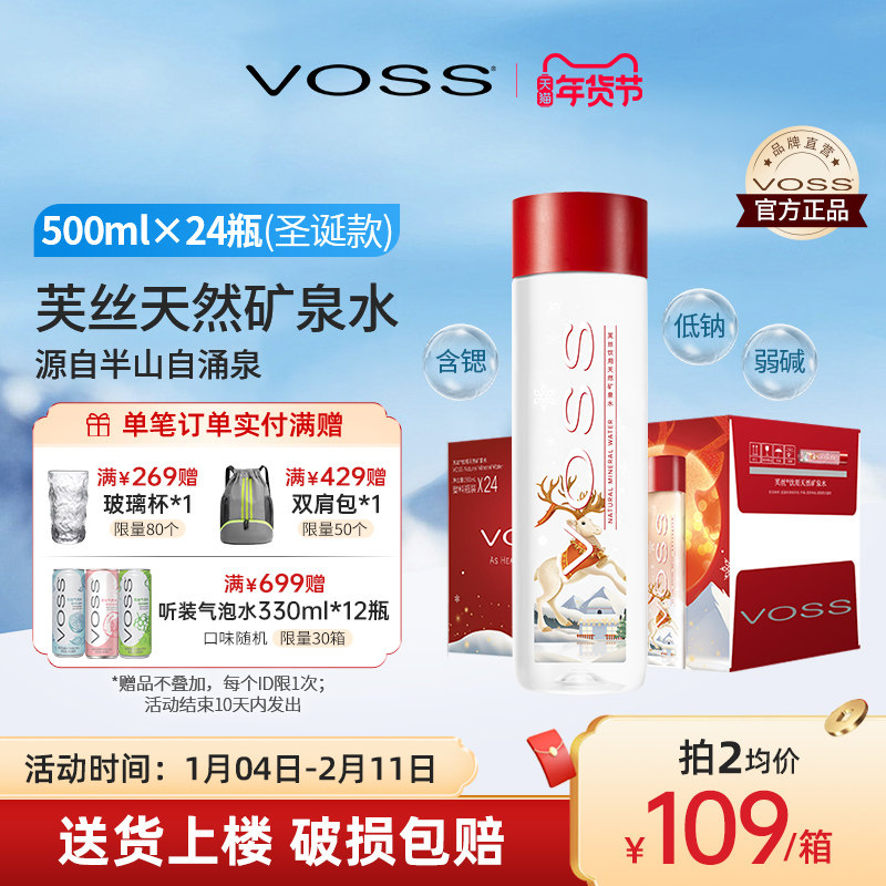 【圣诞款】VOSS芙丝天然矿泉水弱碱性水饮用水500ml*24瓶