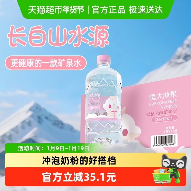 恒大冰泉低钠天然矿泉水适合婴幼儿1L*12瓶婴儿矿泉水宝宝水冲奶