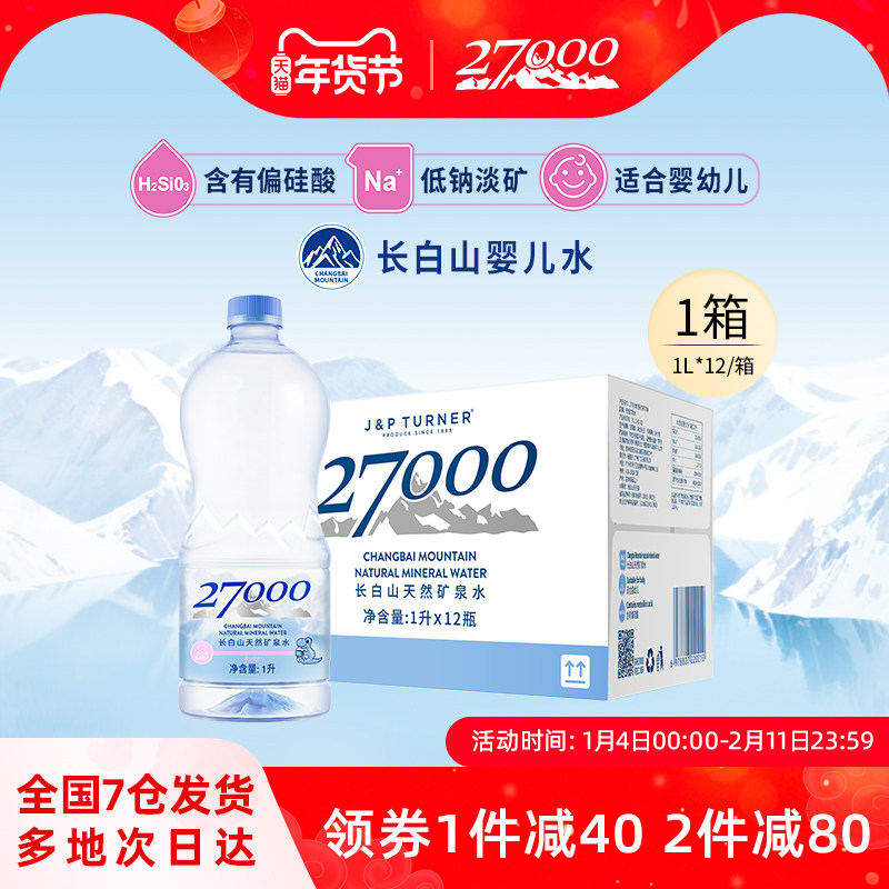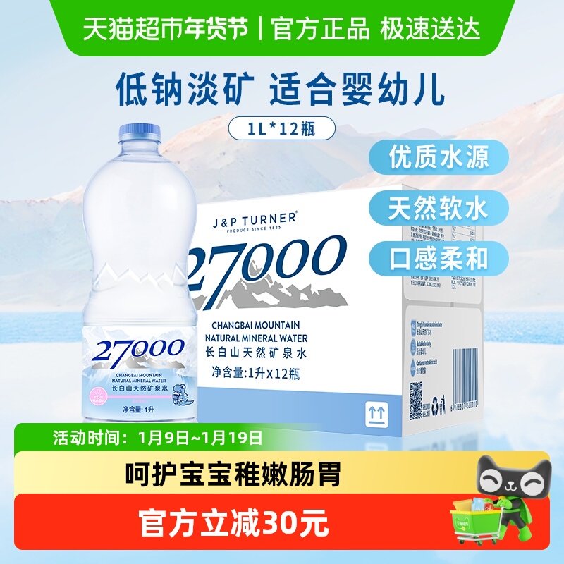 27000母婴儿水1L*12瓶长白山高端明星同款天然矿泉水宝宝饮用水