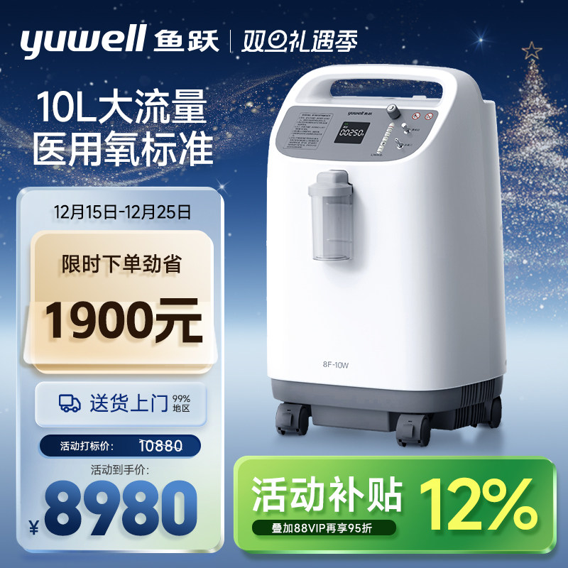鱼跃制氧机10L医用吸氧机高氧浓度老人家用氧气机雾化一体8F-10W