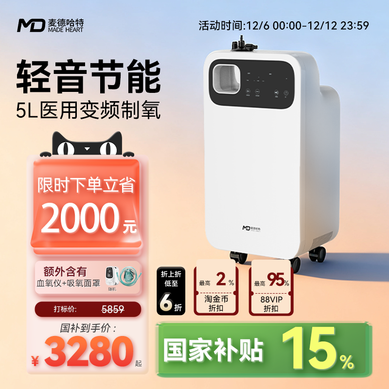麦德哈特车载制氧机高原专用12V小型便携式吸氧机老人家用氧气机