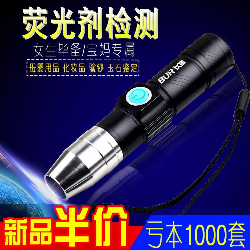 热销荧光剂检测笔 可充电365NM手电筒测试银光剂面膜专用莹光紫外