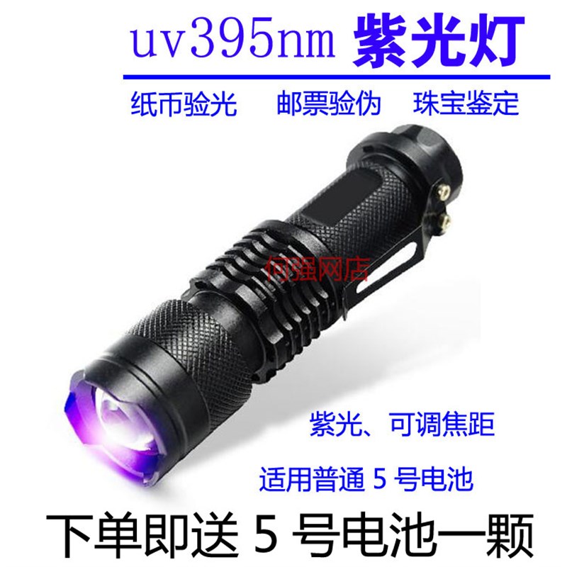 测试荧光剂专用笔紫外线手电筒光莹光剂紫光灯检测验钞灯395nm