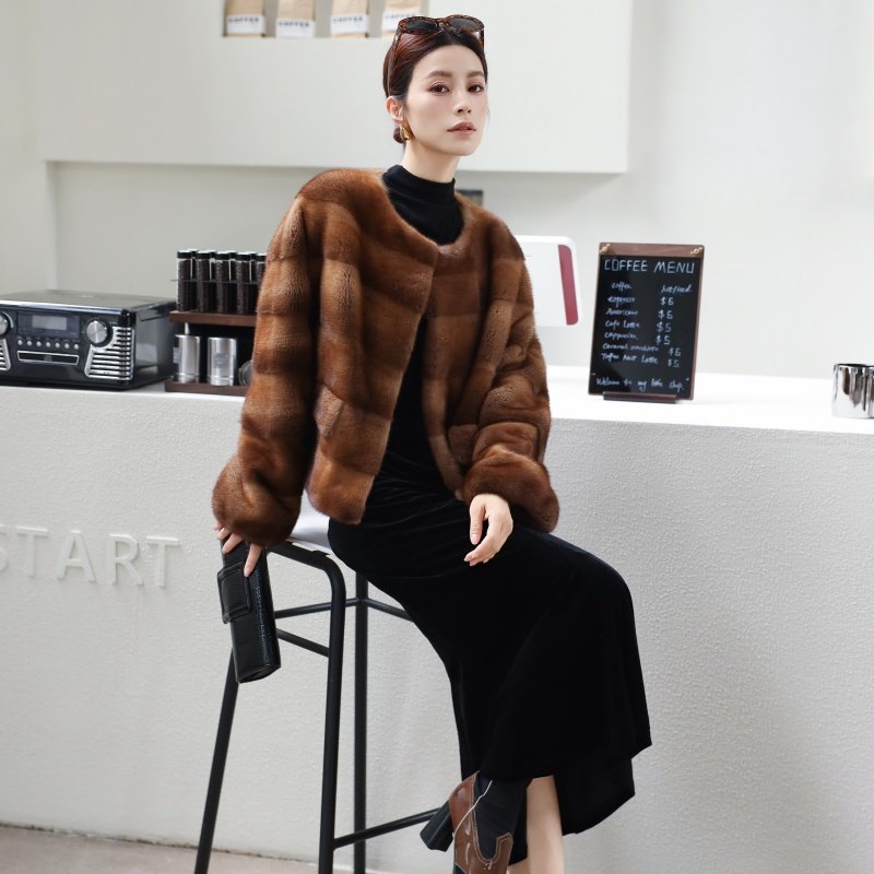 2025新款进口貂皮大衣女款整貂短款方领水貂皮草裘皮外套横排挖削