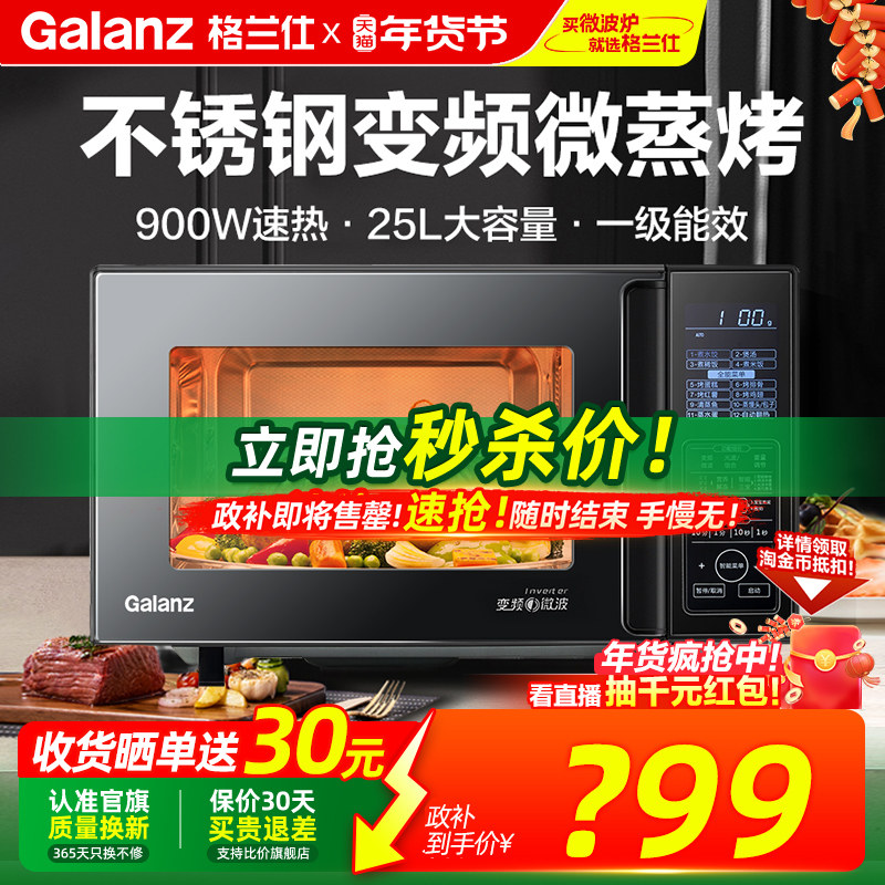 政府补贴格兰仕微波炉家用25L升微蒸烤箱一体机900W平板官方旗舰