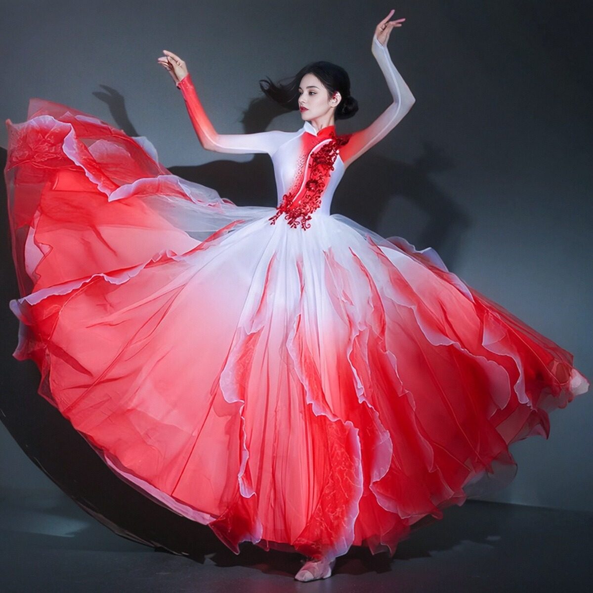 开场舞大摆裙演出服女红色我和我的祖国歌伴舞长裙飘逸舞蹈服装新