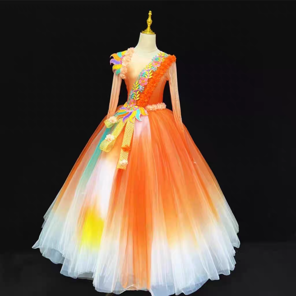新款开场舞大摆裙演出服成人现代大气舞蹈长裙子舞台服渐变色装女