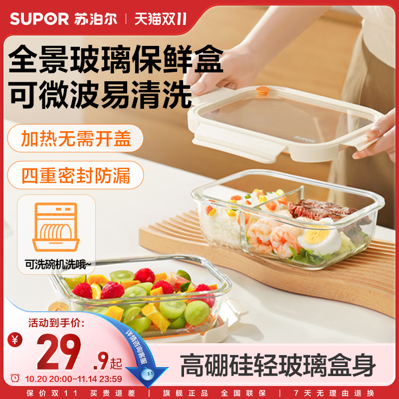 苏泊尔保鲜盒食品级玻璃小饭盒微波炉加热专用水果便当盒带饭餐盒