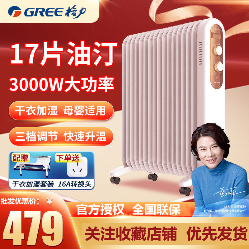 格力电油汀NDY19-S6130取暖17片干衣母婴 开票498/台