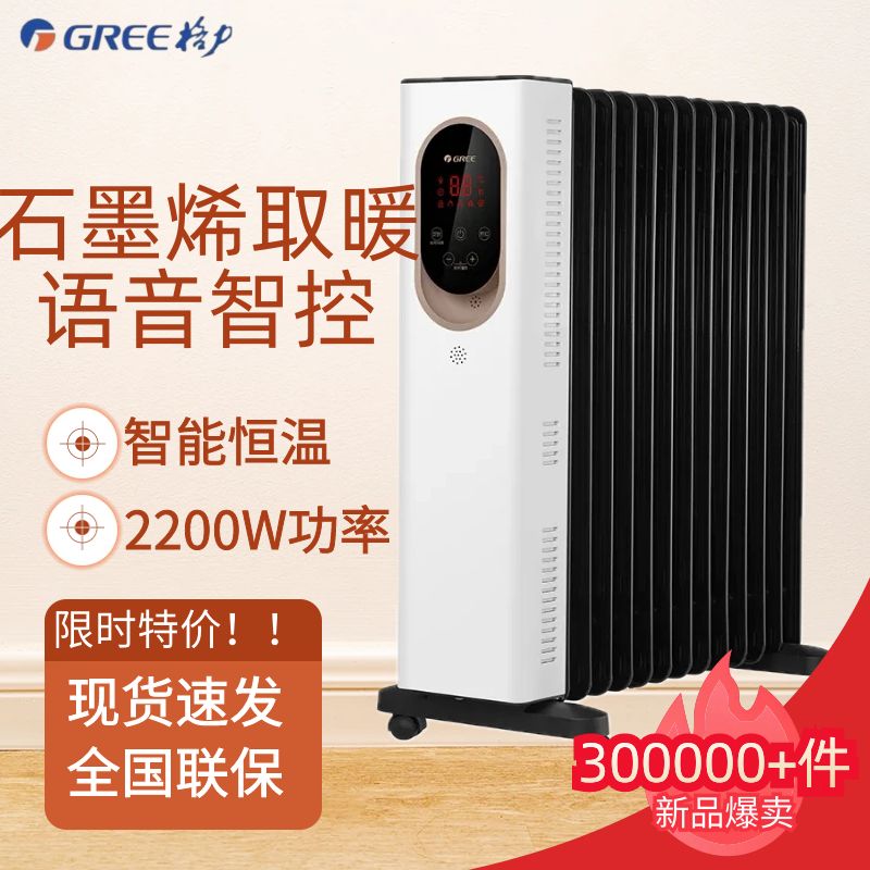 格力电油汀家用17片石墨烯恒温省电暖气卧室智能语音大面积取暖器