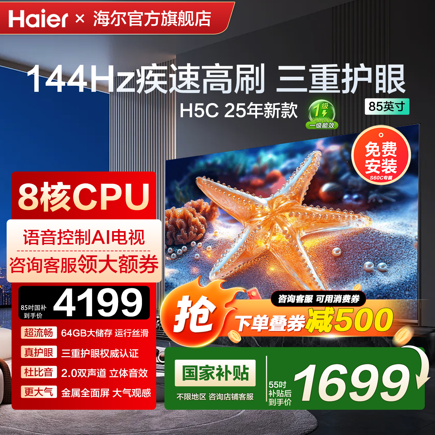 国补海尔小红花85英寸巨幕家用MiniLED智能护眼平板液晶电视机H5C