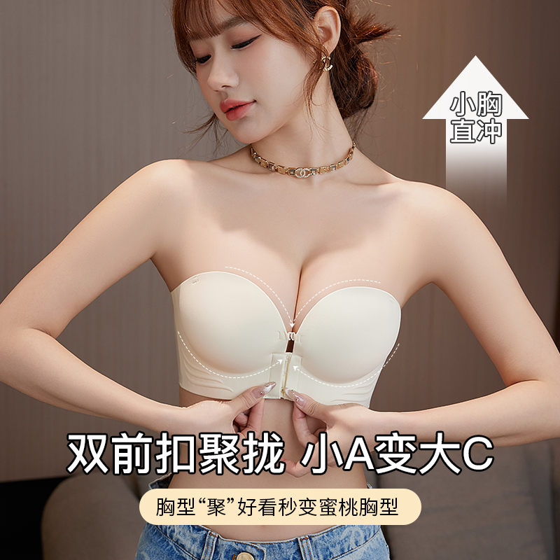 Meol前扣无肩带小胸聚拢抹胸结婚纱隐形裹胸粉底液文胸防滑内衣女