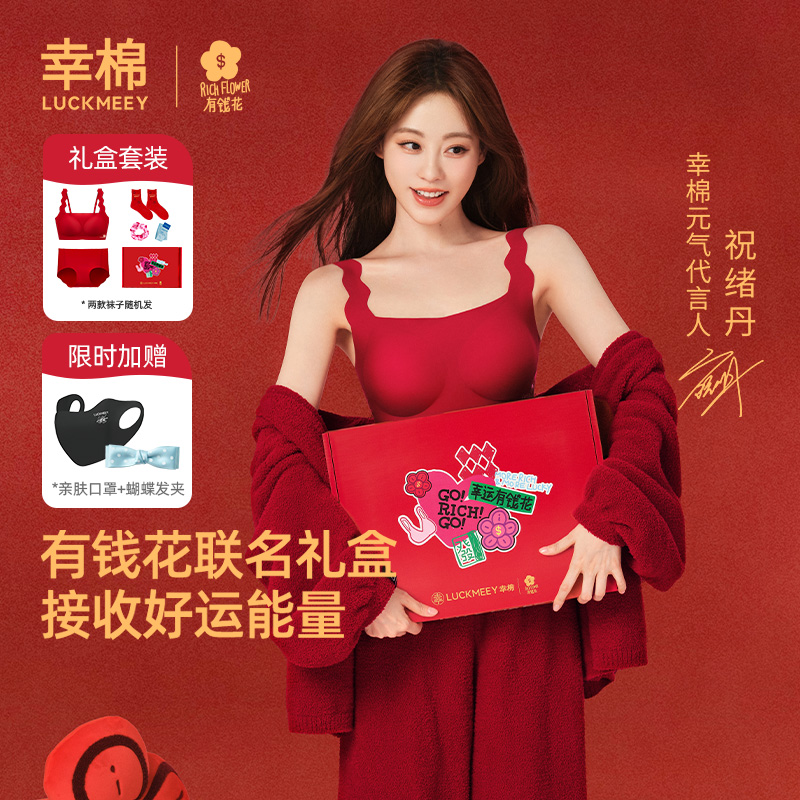 幸棉有钱花红色内衣套装隐形无痕结婚纱新娘礼盒女内裤文胸本命年