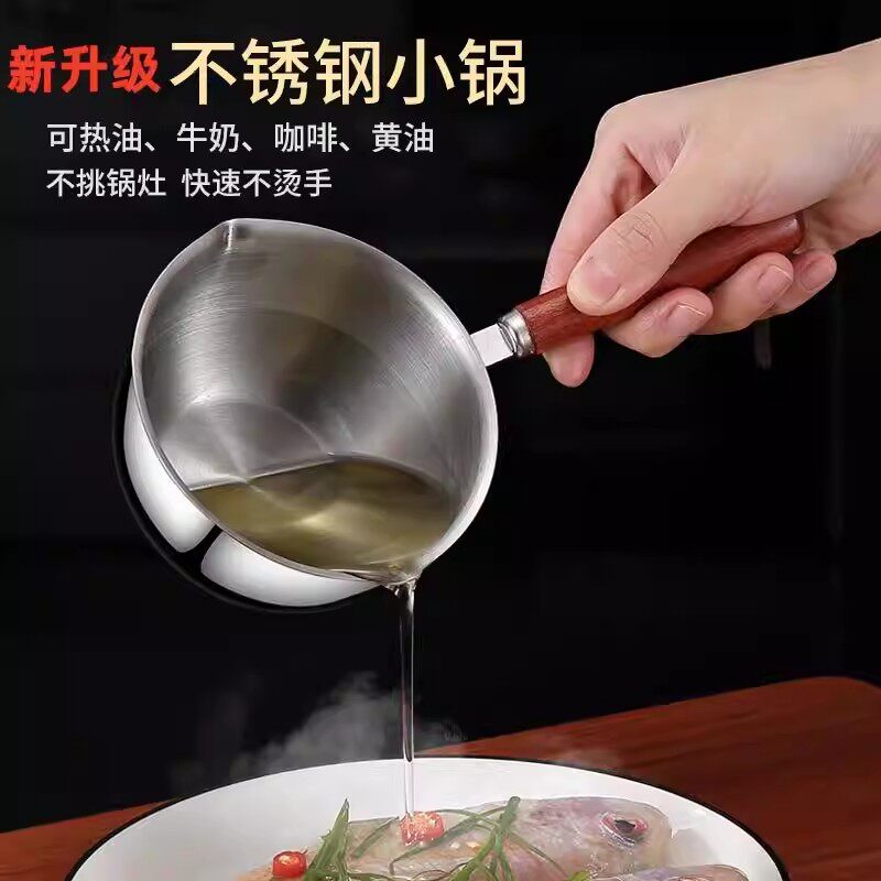【下单立减50】不锈钢泼油小锅家用双导流口设计红柄迷你淋油锅