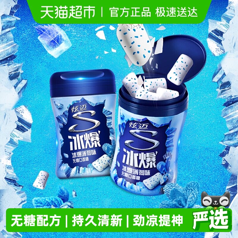 炫迈冰爆薄荷味脆皮无糖口香糖果薄荷持久清新口气网红休闲零食品