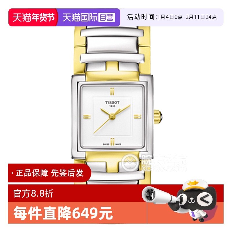 【自营】中古未使用天梭时尚系列女表石英女士腕表瑞士方盘送礼物