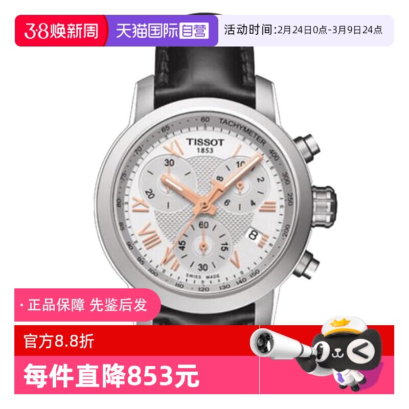 【自营】中古未使用天梭运动系列女表 石英女生手表计时手表礼物