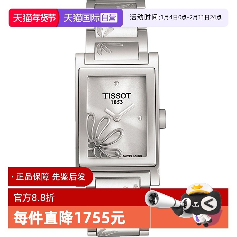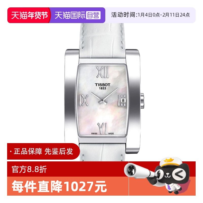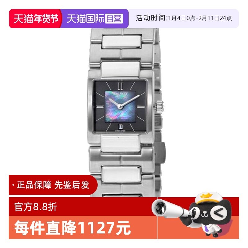 【自营】中古未使用天梭时尚系列女表 石英手表瑞士腕表贝母方形