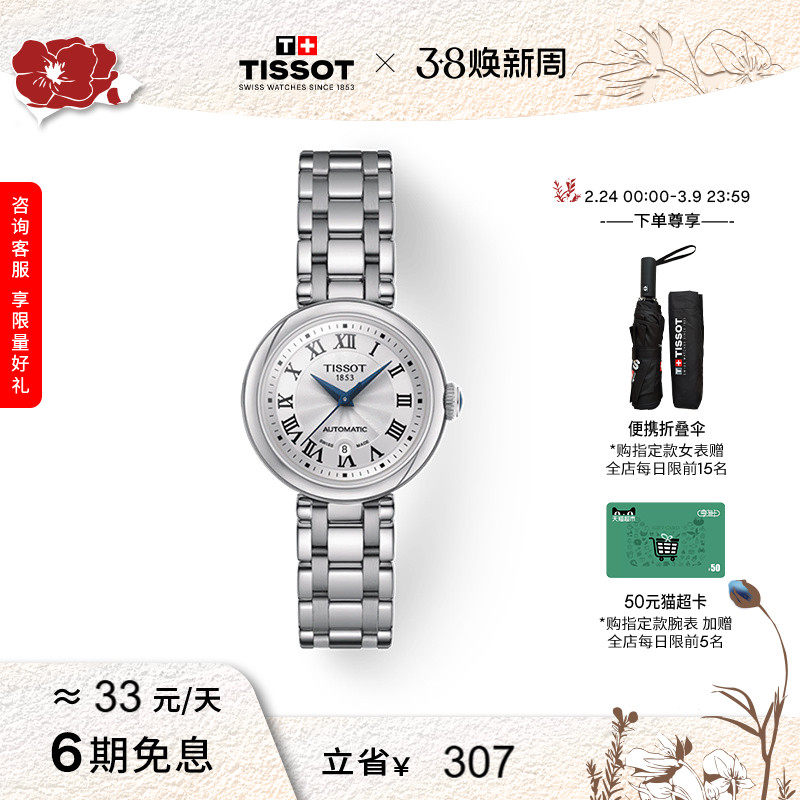 【自营】Tissot天梭嘉丽小美人系列刘亦菲同款机械女表瑞士手表