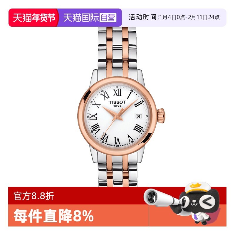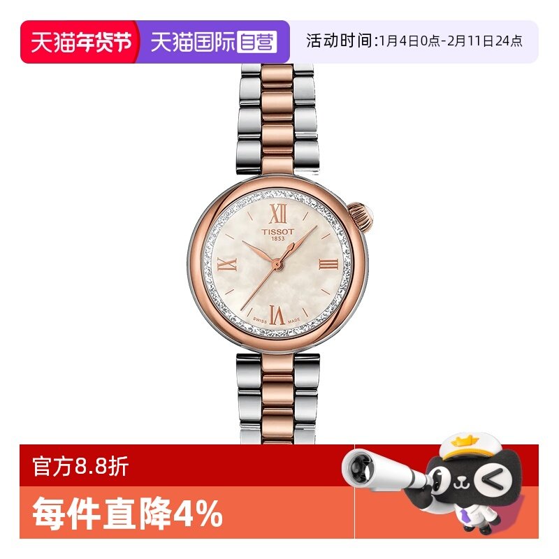 【新品】Tissot天梭时尚系列石英女表玫瑰花天使之眼旋转切换