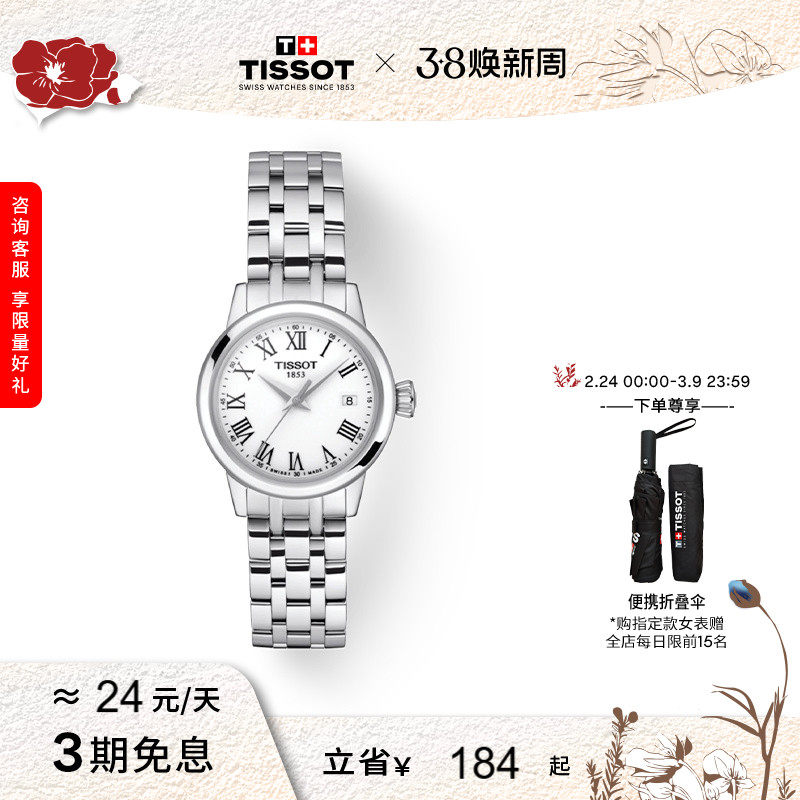 【女神节礼物】Tissot天梭官方正品梦圆系列简约石英女表手表