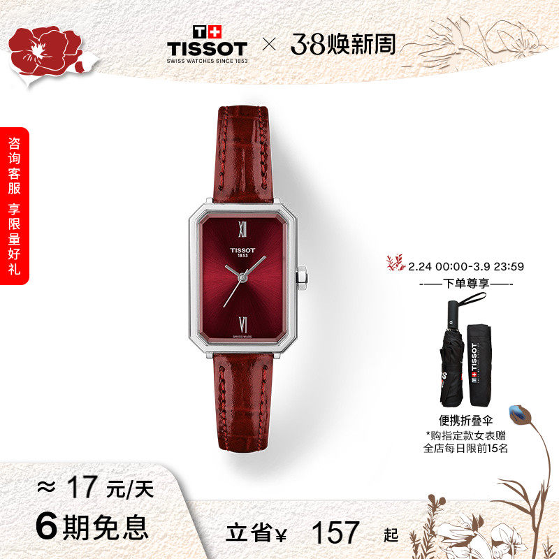 【自营】中古未使用天梭时尚系列女表 石英女士腕表瑞士方形礼物