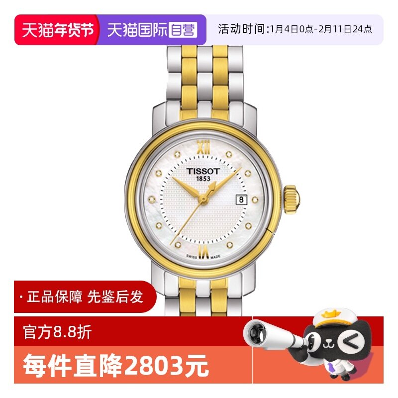 【自营】中古未使用天梭时尚系列女表石英女生手表送礼物贝母钻刻