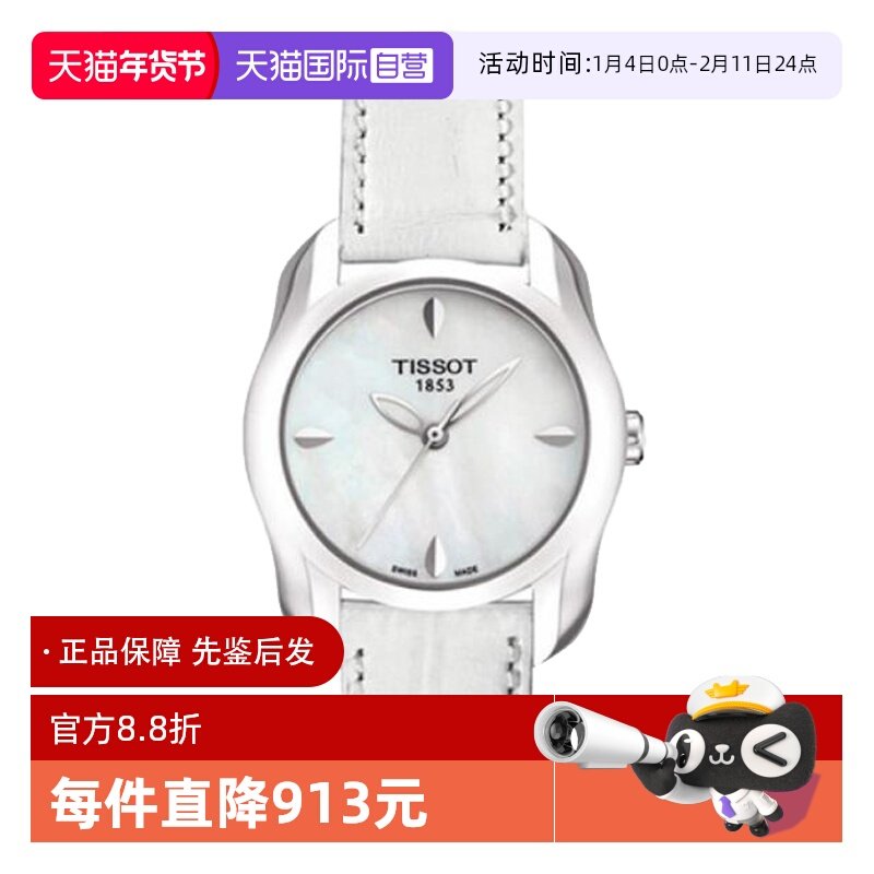【自营】中古全新未使用天梭时尚系列女表石英手表小表盘白色百搭