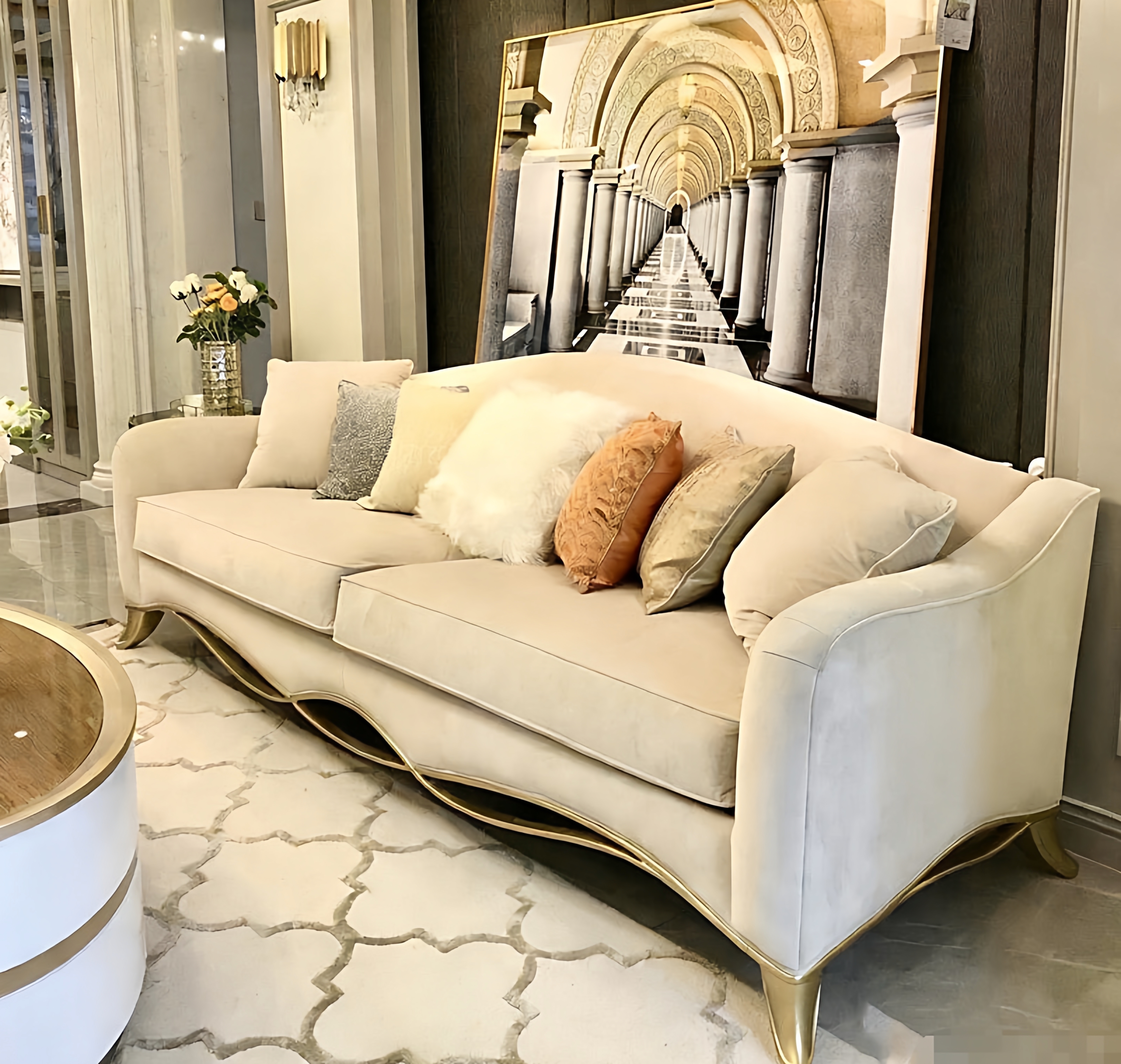 美式轻奢实木沙发布艺沙发别墅后现代意式客厅雕花组合三人位沙发
