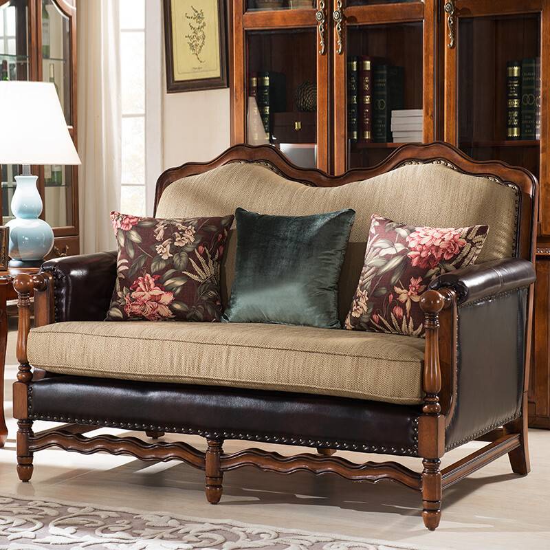A10L美式乡村皮布艺沙发组合复古个性经典小户型客厅单人沙发椅老