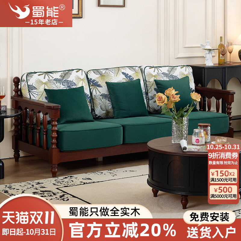 美式实木沙发布艺组合小美风格小户型客厅复古乡村田园风原木家具