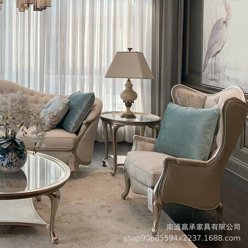 美式乡村实木布艺沙发组合简美家用三人位欧式现代小户型轻奢客厅