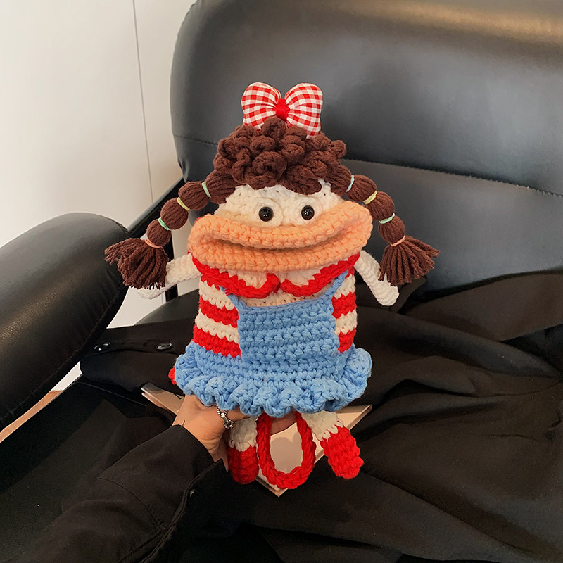 毛线大嘴包成品手工编制香肠嘴包包单肩斜挎毛线包新款手机包女包