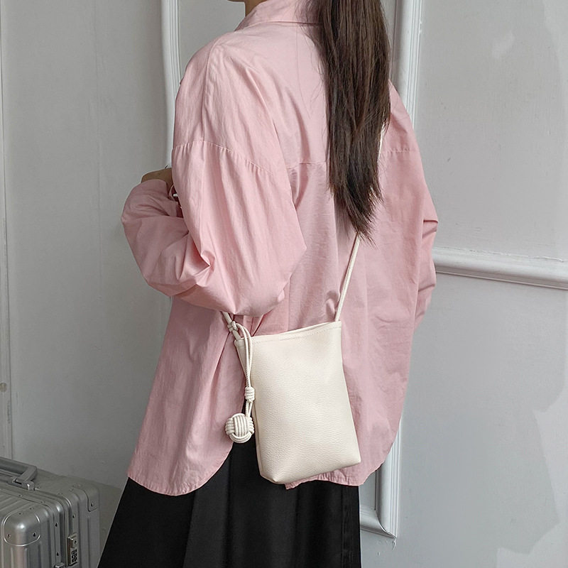 手机小斜挎包真皮质感2025新款编制球竖款软迷你休闲散步女包包