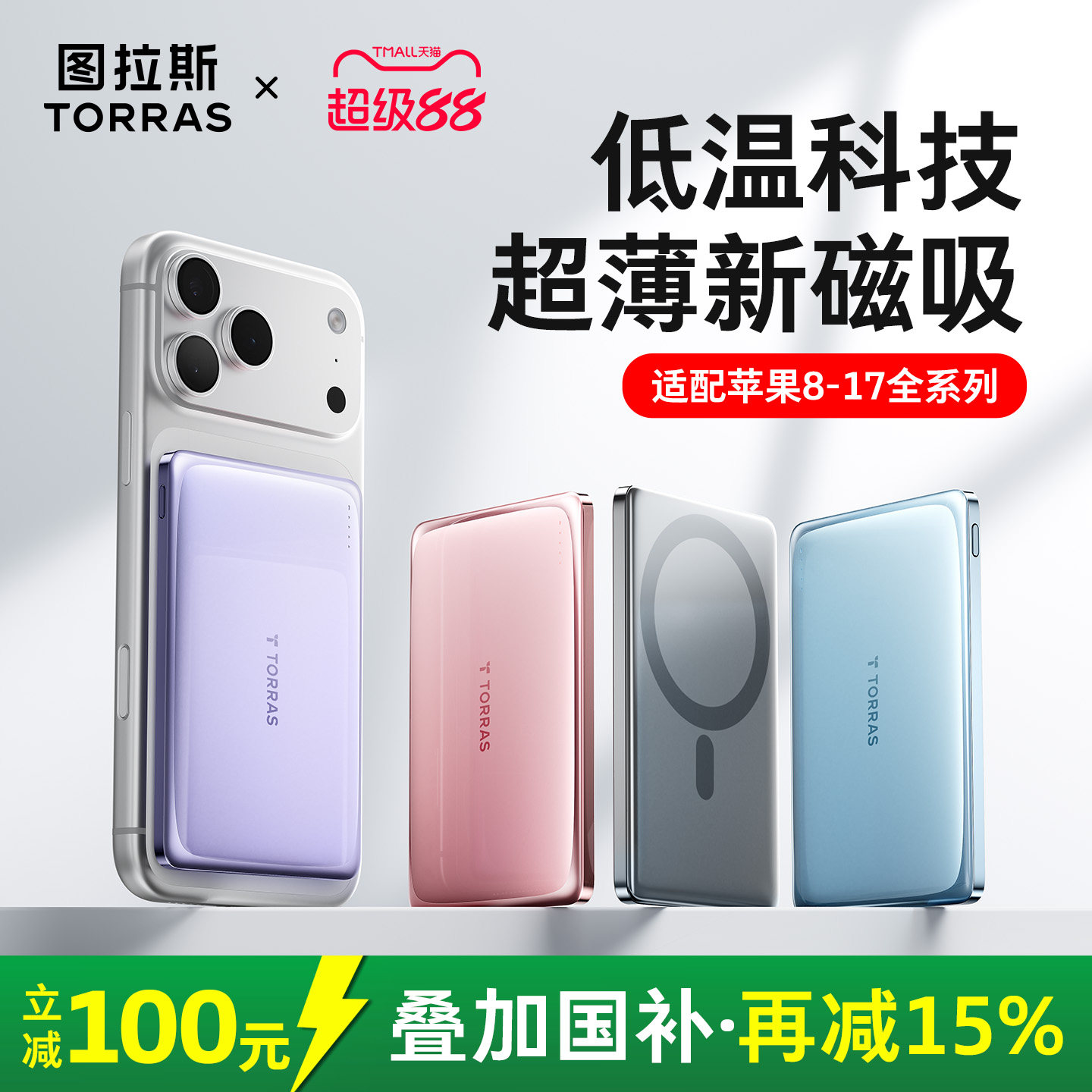 图拉斯磁吸充电宝2026新款小冰片适用苹果iPhone无线超薄便携款式3C认证可上飞机快充大容量移动电源magsafe