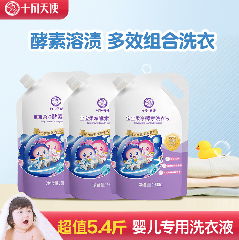 十月天使宝宝洗衣液2kg桶装+900g袋装酵素洗衣液多效去渍洁净柔顺