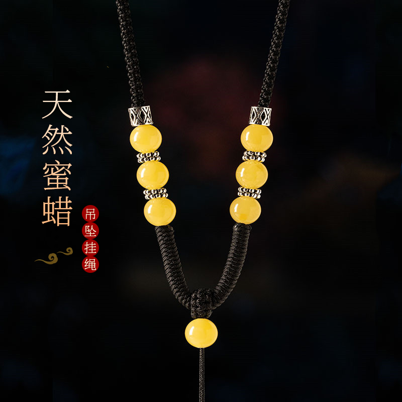 高档天然琥珀蜜蜡吊坠挂绳手工编织纯银南红玛瑙观音佛脖子项链绳
