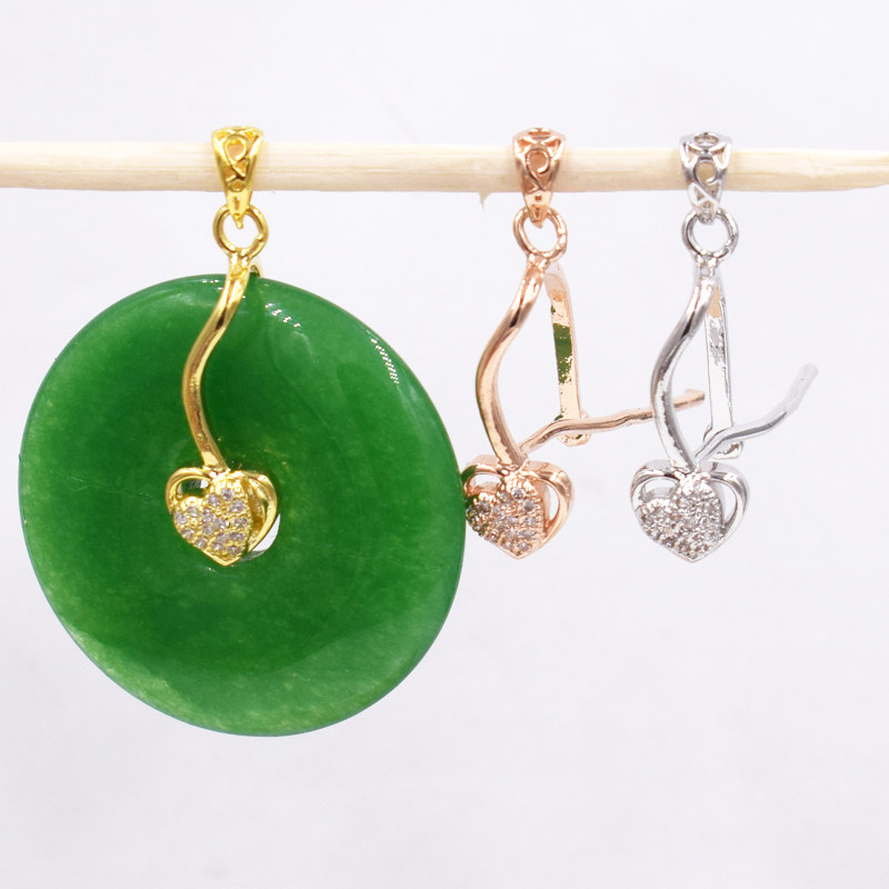 S925纯银平安扣夹扣翡翠碧玉平安扣头玉石玉髓玉器琥珀蜜蜡吊坠扣