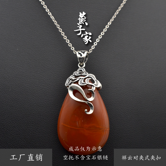 燕子家S925纯银夹扣吊坠扣银夹扣银扣DIY扣玉石琥珀蜜蜡吊坠扣头