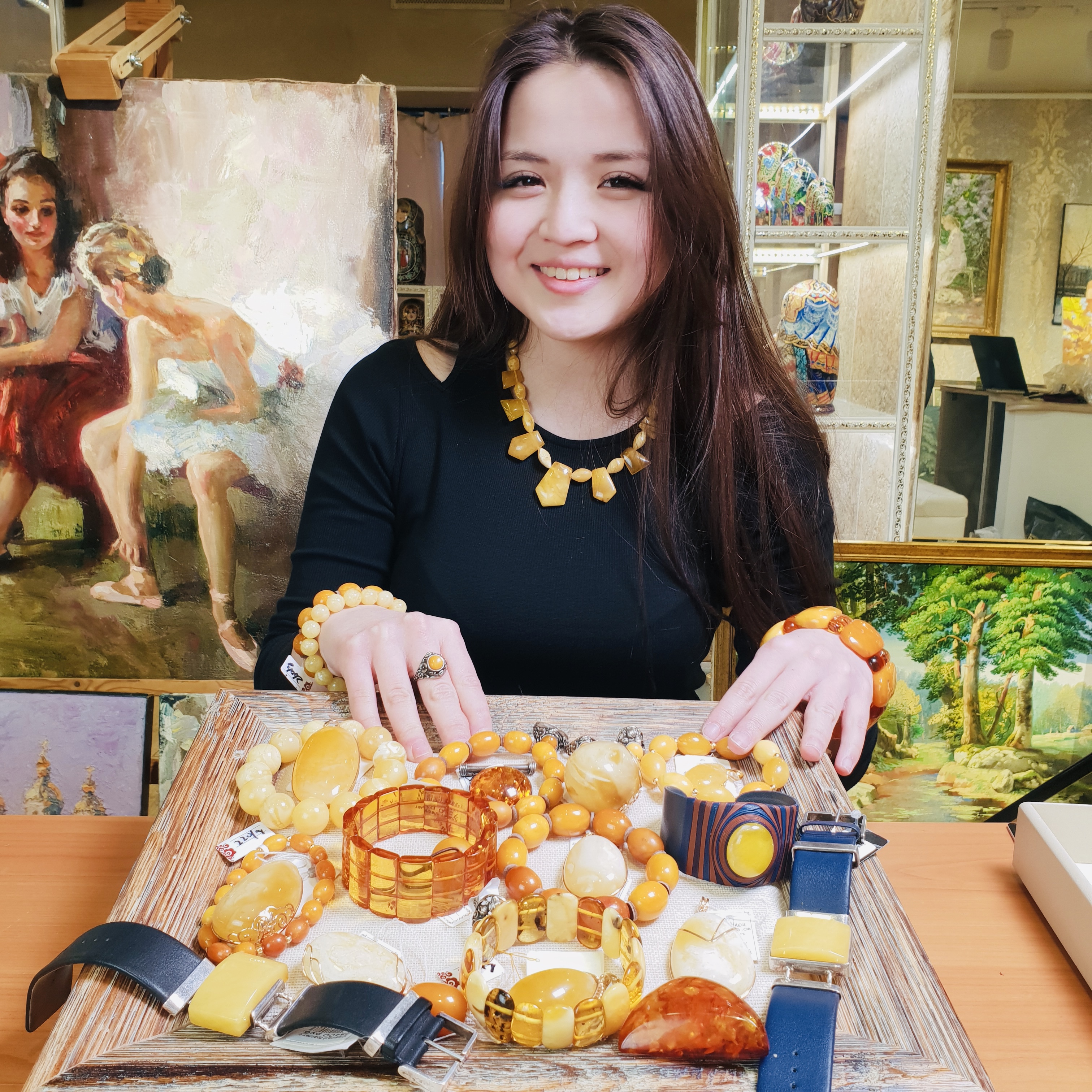 艾蜜罗俄罗斯直播琥珀蜜蜡吊坠老项链俄料戒指毛衣链项链配饰手串