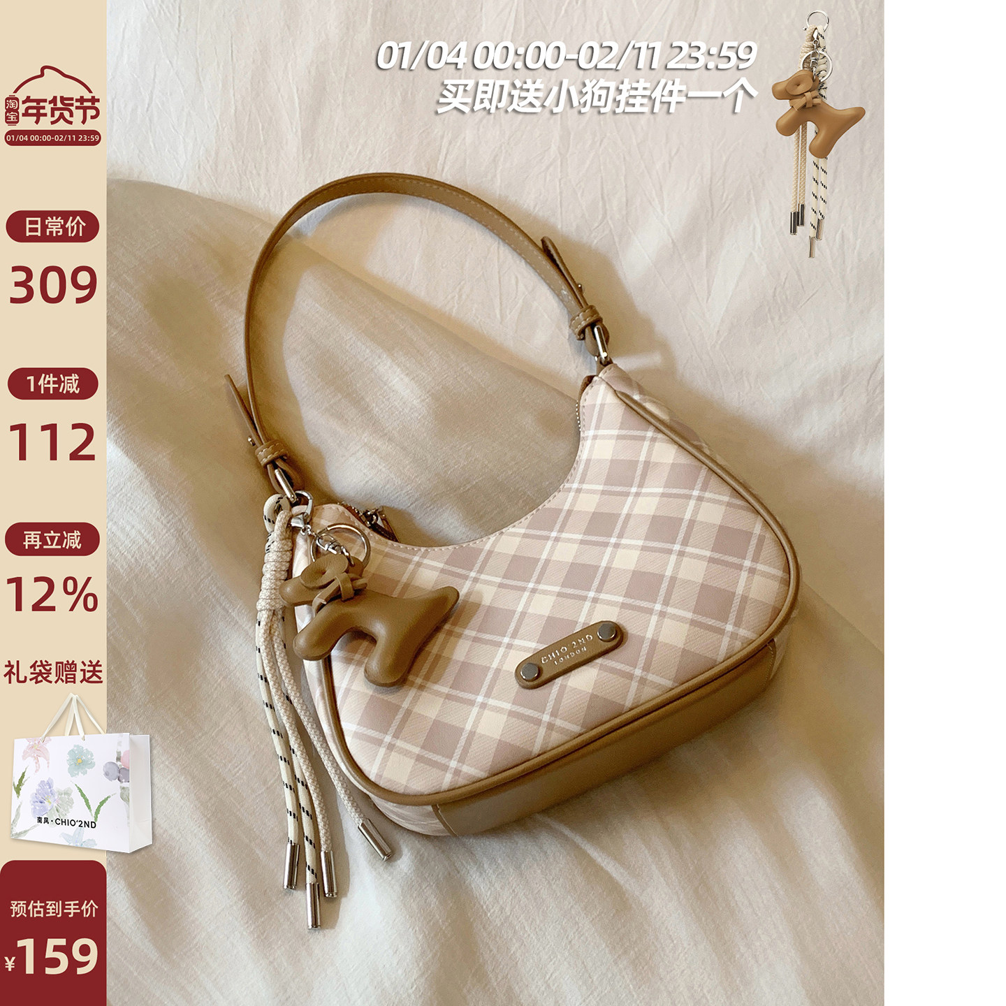 南风Chio2nd 秋冬巴黎腋下包包女2025新款复古格纹通勤单肩斜挎包