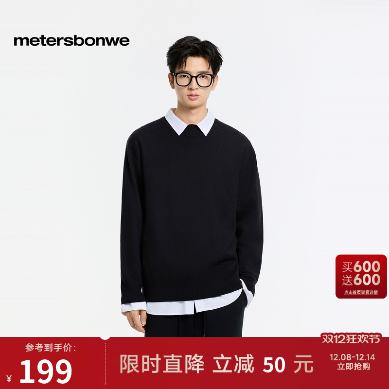 美特斯邦威打底毛衫男2025冬季新款休闲通勤小高领纯色套头毛衣