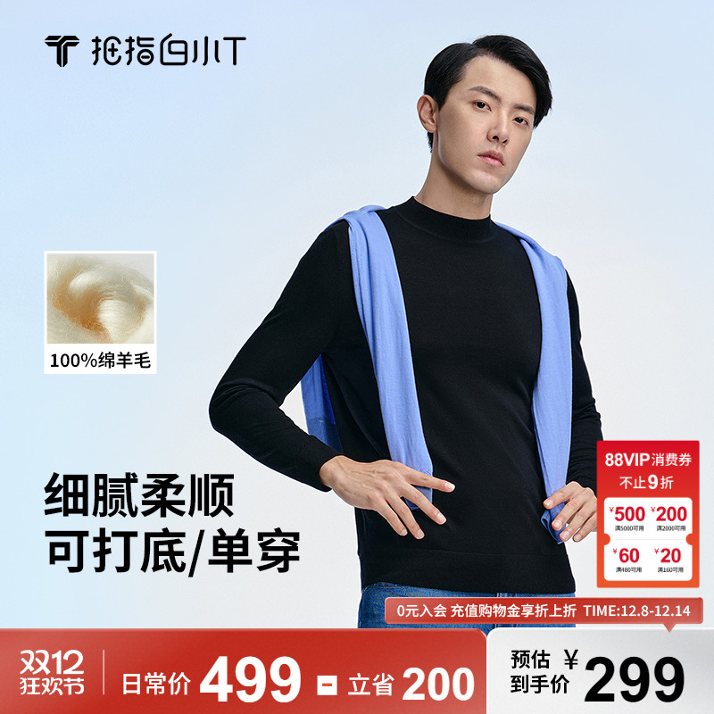 拇指白小衫小高领羊毛衫男秋冬新款纯羊毛简约上衣高端保暖打底衫