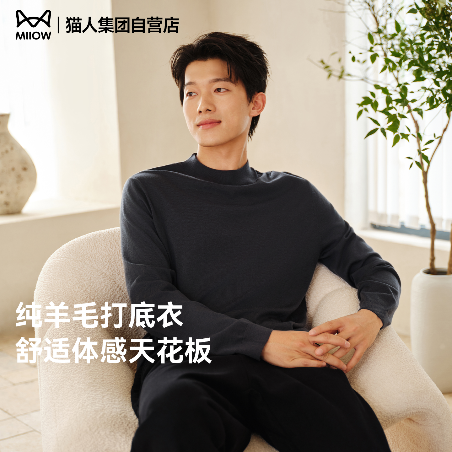 猫人男士羊毛衫2025年新款秋冬季小高领纯色百搭保暖打底上衣内搭