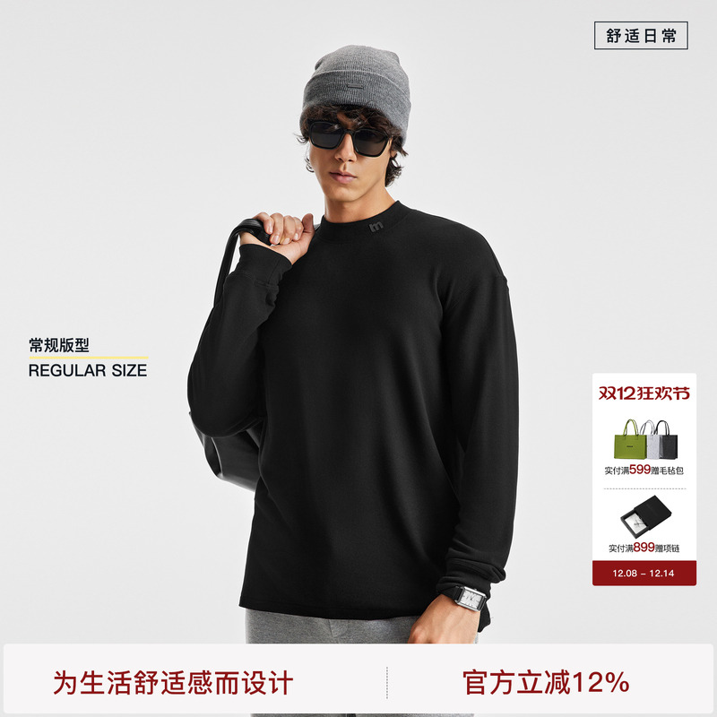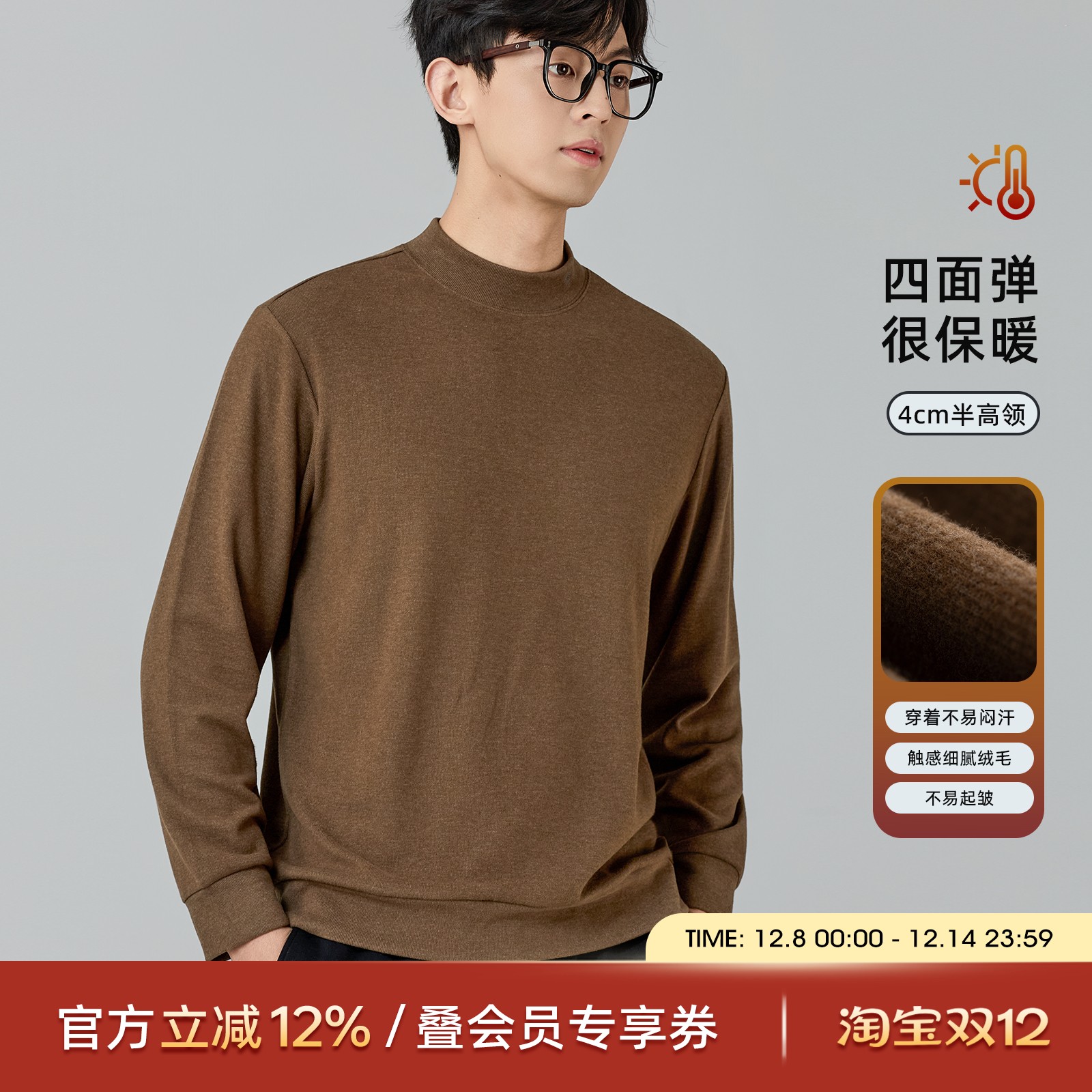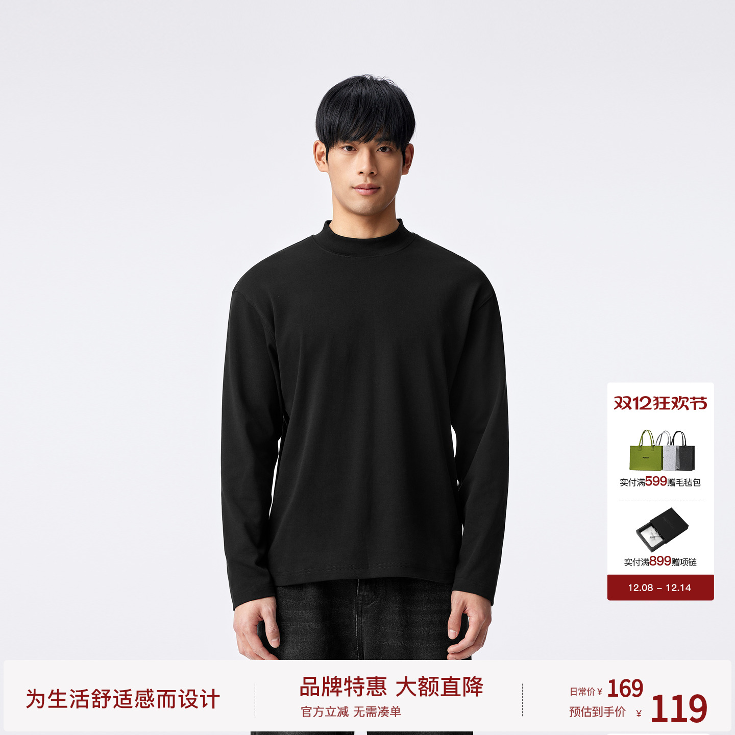 【慵懒打底衫】太平鸟男装 德绒长袖T恤冬季新款半高领纯色内搭男