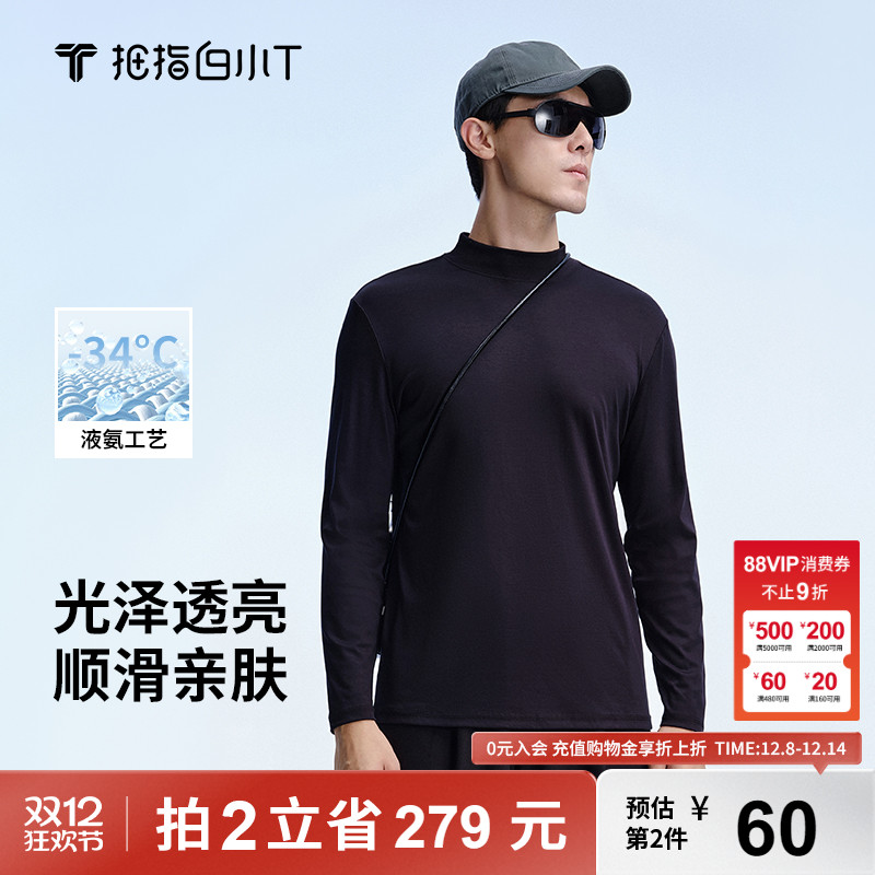 3件】莫代尔半高领秋衣男士长袖t恤打底衫薄款中领内衣上衣服男装