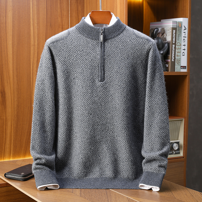 秋冬新款100纯山羊绒衫男拉链半高领加厚毛衣中年打底羊毛针织衫